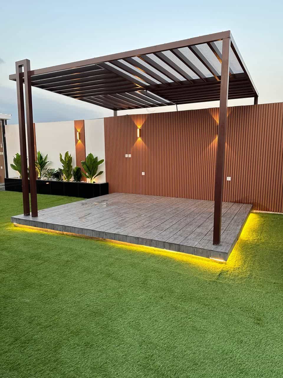 تقدم شركة فن المرمي لتنسيق الحدائق خدمات تصميم وتنفيذ المظلات والبرجولات بأشكال عصرية وخامات عالية الجودة تناسب جميع أنواع الحدائق، سواء في المنازل أو الفلل أو الاستراحات.
